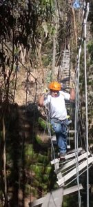We use this corona pandemic to repair and restore. Here are Simona and her husband Santos mending the roof. Deyni gives the cable car tower a new coat of paint.